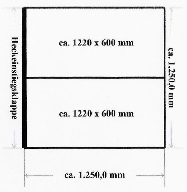 750 kg Aggregat ungebremst; 18 mm wasserfestverleimte Holzplatten (Farbe braun); runde Kotflügel; Einstiegsklappe; 2 Kiemenbleche für die Lüftung der Boxen; verzinkte Gitterinnentüren; Tüv-Abnahme wahlweise für Fahrzeugbrief oder Betriebserlaubnis