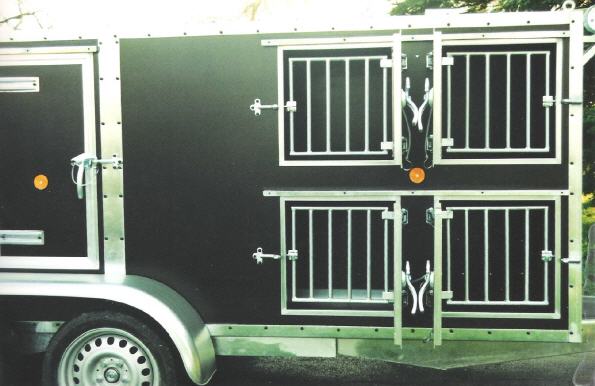 2000 kg-Tandem-Gummifederachse mit Einzelradfederung; 18 mm wasserfestverleimte Phenolharzfilm-Mehrschichtplatten (Farbe braun); Doppelstöcker; abgerundete Kotflügel; Siebdruckboden; Einstiegstüren; 12 Kiemenbleche für die Lüftung der Boxen; verzinkte Gitterinnentüren; Stützrad; Tüv-Abnahme wahlweise für Fahrzeugbrief oder Betriebserlaubnis