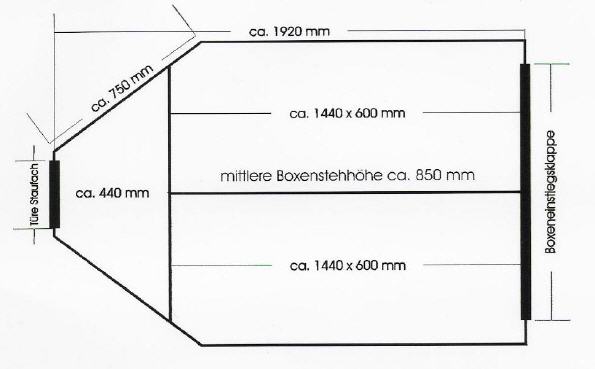 aus Vollpolyester, Standartfarbe weiß; 750 kg Aggregat ungebremst mit Einzelradaufhängung und wartungsfreien Kompaktradlagern; runde Kotflügel; Einstiegsklappe abschließbar; 2 Kiemenbleche für die Lüftung der Boxen; verzinkte Gitterinnentüren; vorne Staufach abschließbar; 7- poliger Elektroanschlußstecker, Tüv-Abnahme wahlweise für Fahrzeugbrief oder Betriebserlaubnis